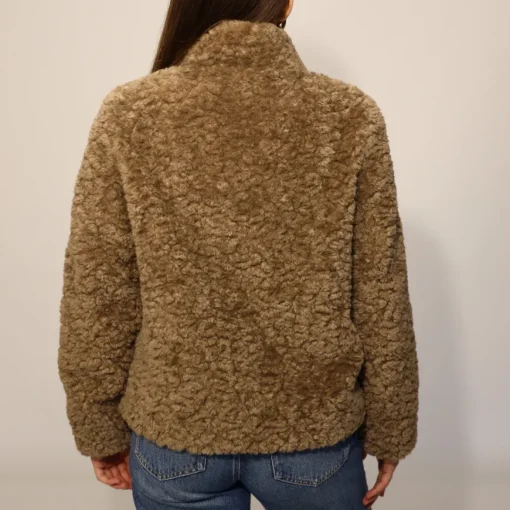 Pelliccia teddy da donna di RINO&PELLE, realizzato in poliestere morbido, effetto teddy, color taupe. Chiusura con bottoni.