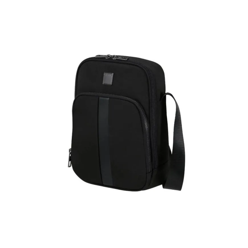 Borsello da uomo di SAMSONITE della linea SACKSQUARE realizzato in tessuto nero con inserti in neri. Unico comparto con tasche accessorie e tasca esterna. Tasca imbottita porta tablet con grandezza 9.7″. Chiusura con zip. Tracolla in tessuto regolabile.