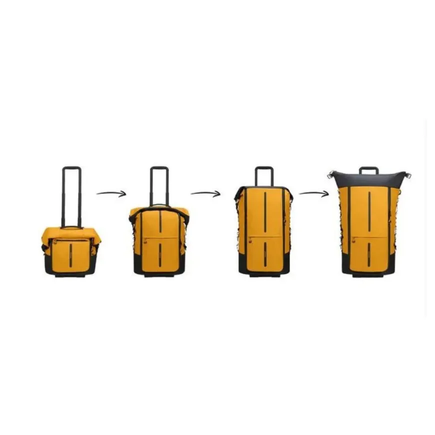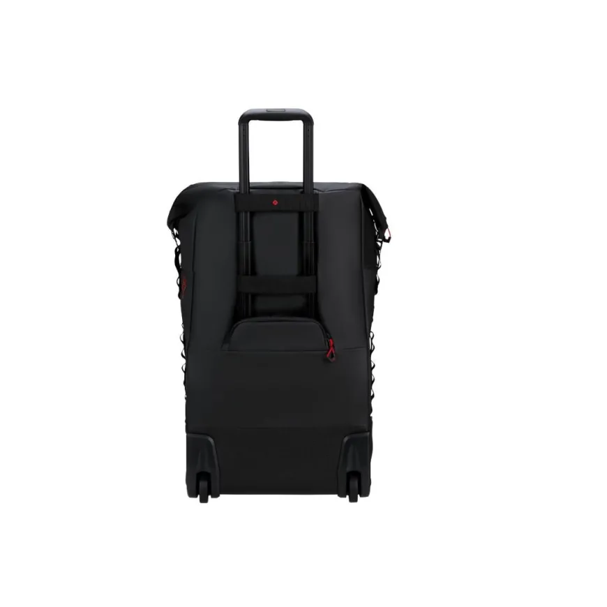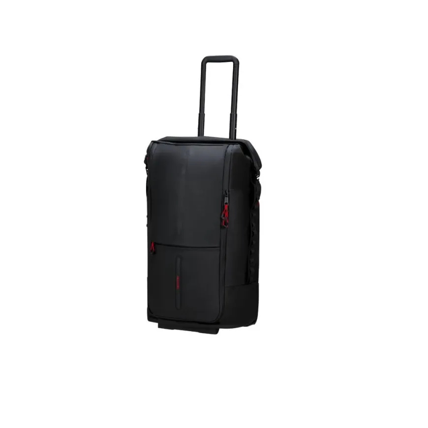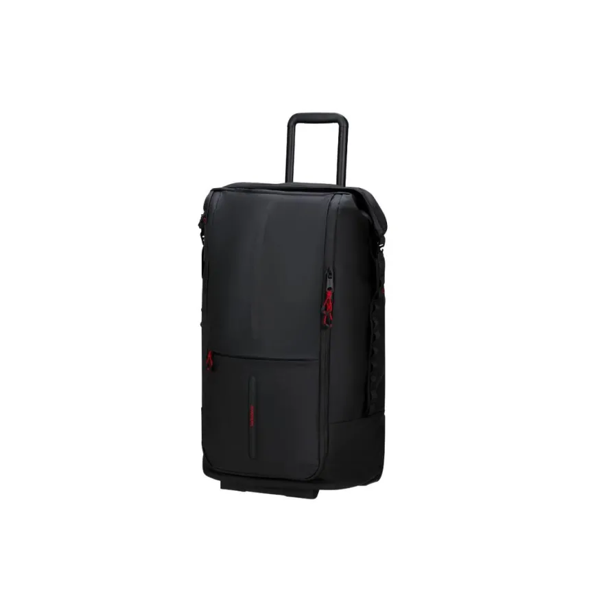 Borsone 4 in 1 con ruote di SAMSONITE della linea ECODIVER. Realizzato in materiale reciclato e spalmato per permettere una maggiore restistenza all’acqua. Grazie ai suoi ganci è possibile ridurre il borsone dal formato sotto sedile al più grande con altezza 82 cm. Comoda da riempire sia grazie all’apertura sopra che dalla grande zip. Due ruote con ganci pieghevoli per riporlo al meglio in minor spazio.