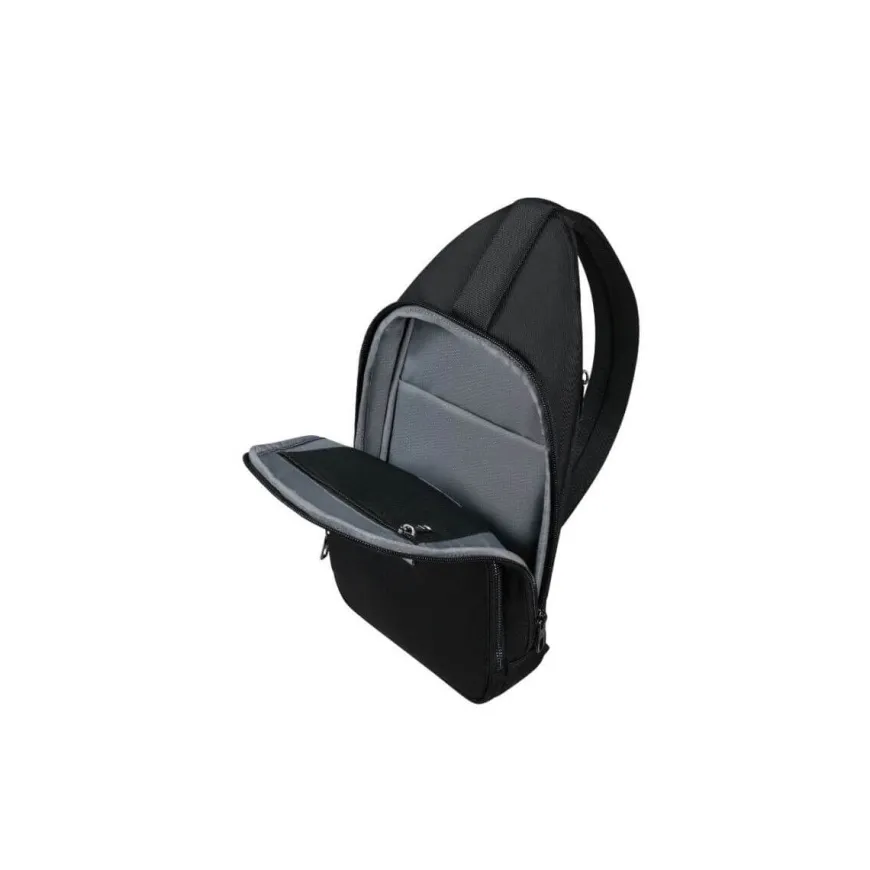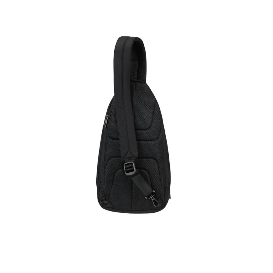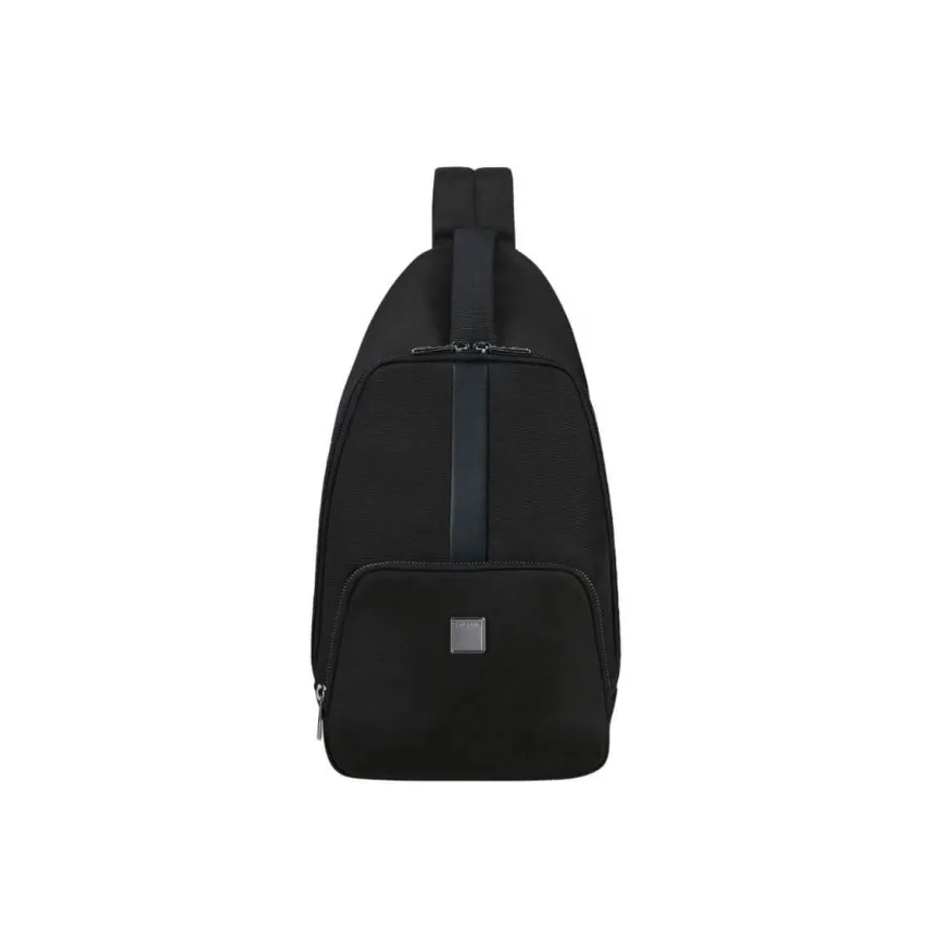 Monospalla da uomo di SAMSONITE della linea SACKSQUARE realizzato in tessuto nero con inserti in neri. Unico comparto con tasche accessorie e tasca esterna. Chiusura con zip. Tracolla in tessuto regolabile, spallaccio e schienale anatomici e imbottiti.