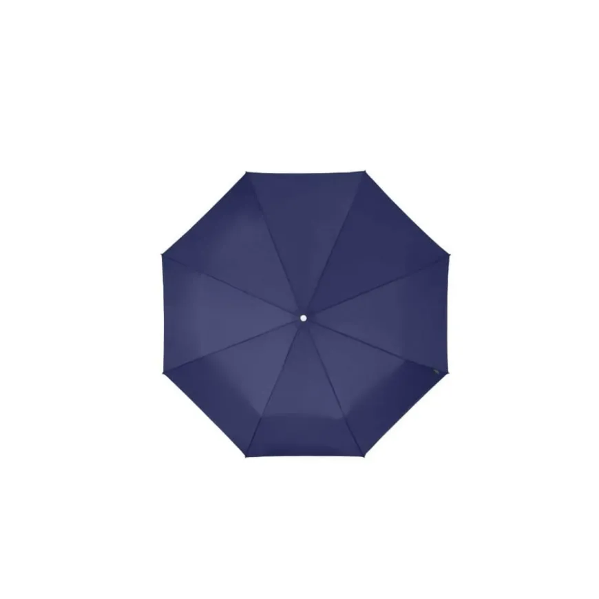 Ombrello mini unisex, marchio SAMSONITE. Fusto in acciaio con meccanismo automatico apri-chiudi. Struttura antivento, rifinita con TEFLON® tinta unita blu. Altezza fusto da chiuso 28,5 cm, rosa di copertura diametro 98 cm, peso 300 grammi.