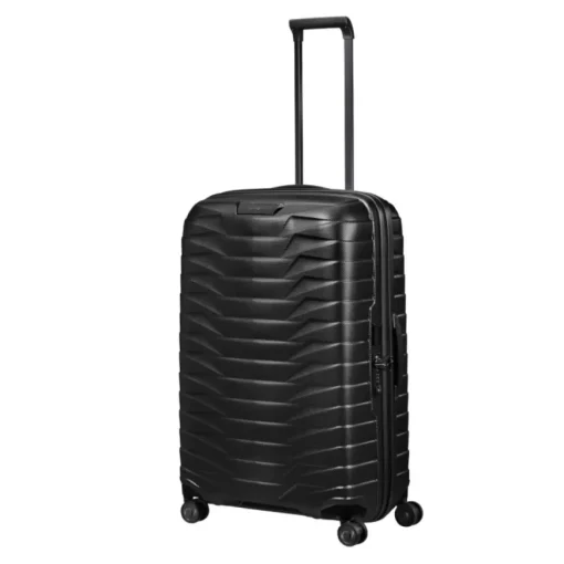 Trolley medio-grande rigido, della linea PROXIS di SAMSONITE dal design unico e avanzate tecnologie color grigio scuro opaco. Realizzato in materiale Roxkin™ polipropilene, materiale innovativo altamente flessibile in caso di impatto e molto resistente. Ritorna in forma facilmente. Vano interno organizzato con divisorio e cinghie elastiche. Chiusura con combinazione e sistema TSA. Quattro ruote bidirezionali. Carrello bitubo.