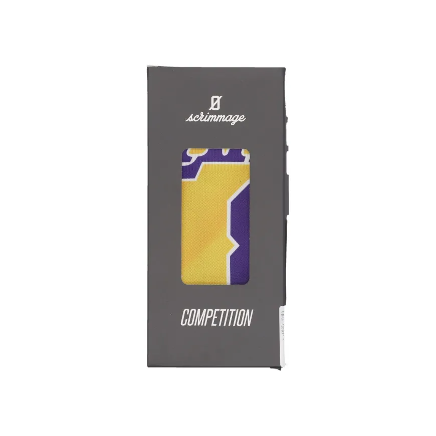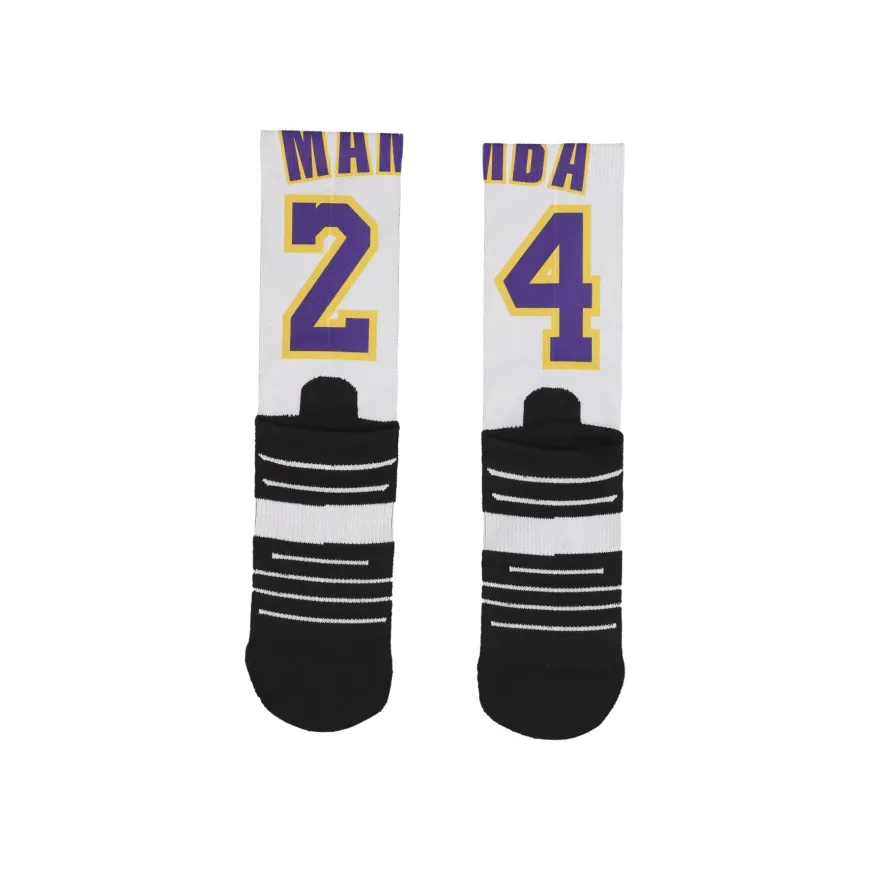 Calze unisex donna uomo fashion e colorate fantasia Los Angeles Lakers di SCRMMAGE. Composizione: 88% poliestere a rapida asciugatura, 10% Coolmax, filato hight tech per asciugare l’umiditá piu velocemente e termoregolarizzare la temperatura, 10% cotone 2% spandex.