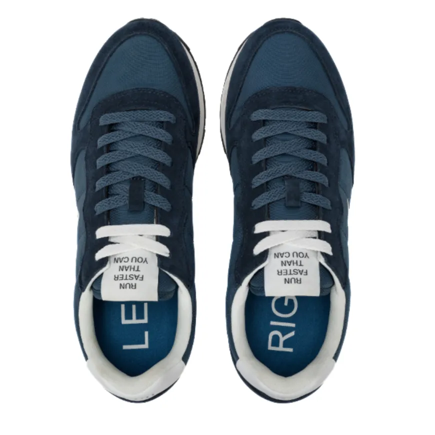 Sneaker da uomo, di SUN68. Tomaia realizzata in tessuto bianco con inserti in camoscio beige e azzurro. Interno e sottopiede, removibile, foderati in tessuto. Chiusura con lacci (lacci colorati in dotazione). Suola running in gomma bicolor.