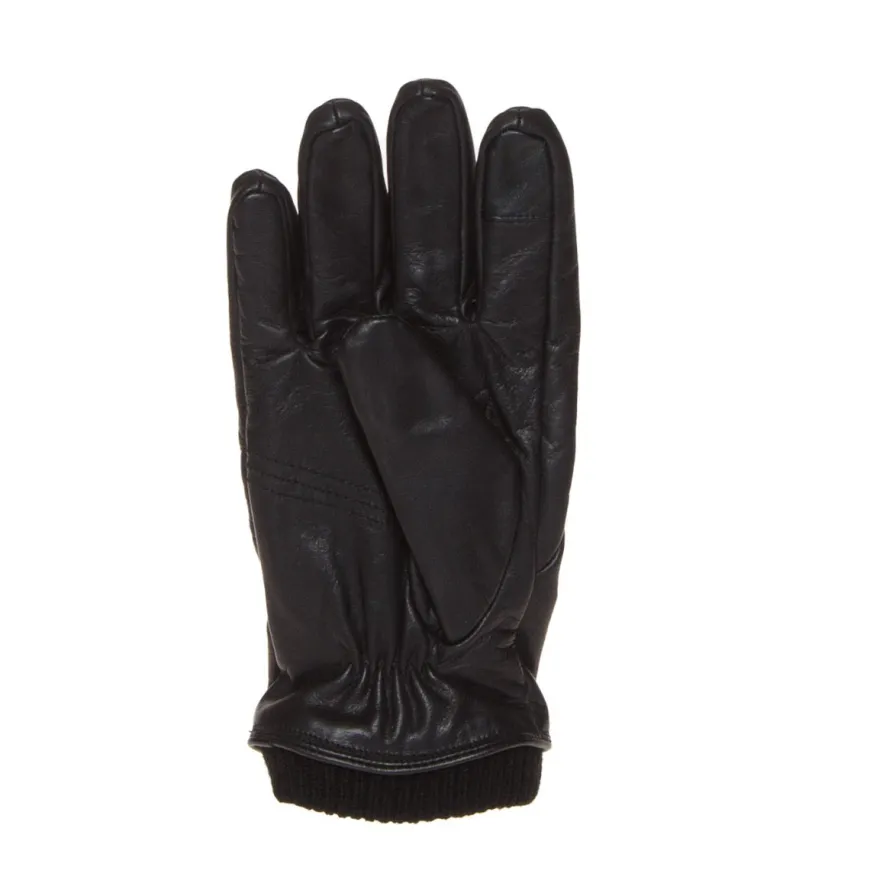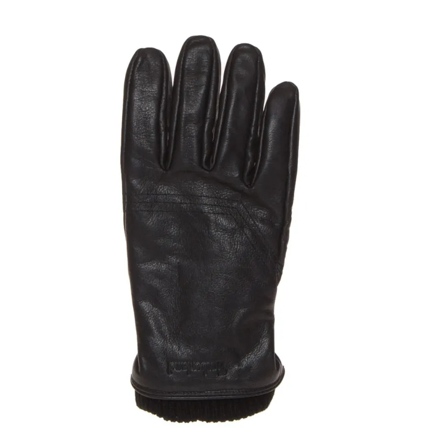 Guanti uomo in pelle nera di TIMBERLAND. Inserto elasticizzato nella zona polso per maggiore aderenza. Internamente foderato in caldo tessile, collarino elasticizzato.