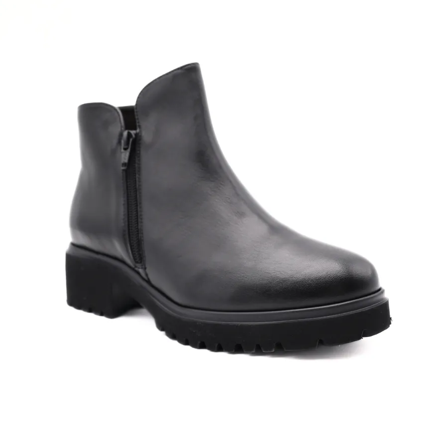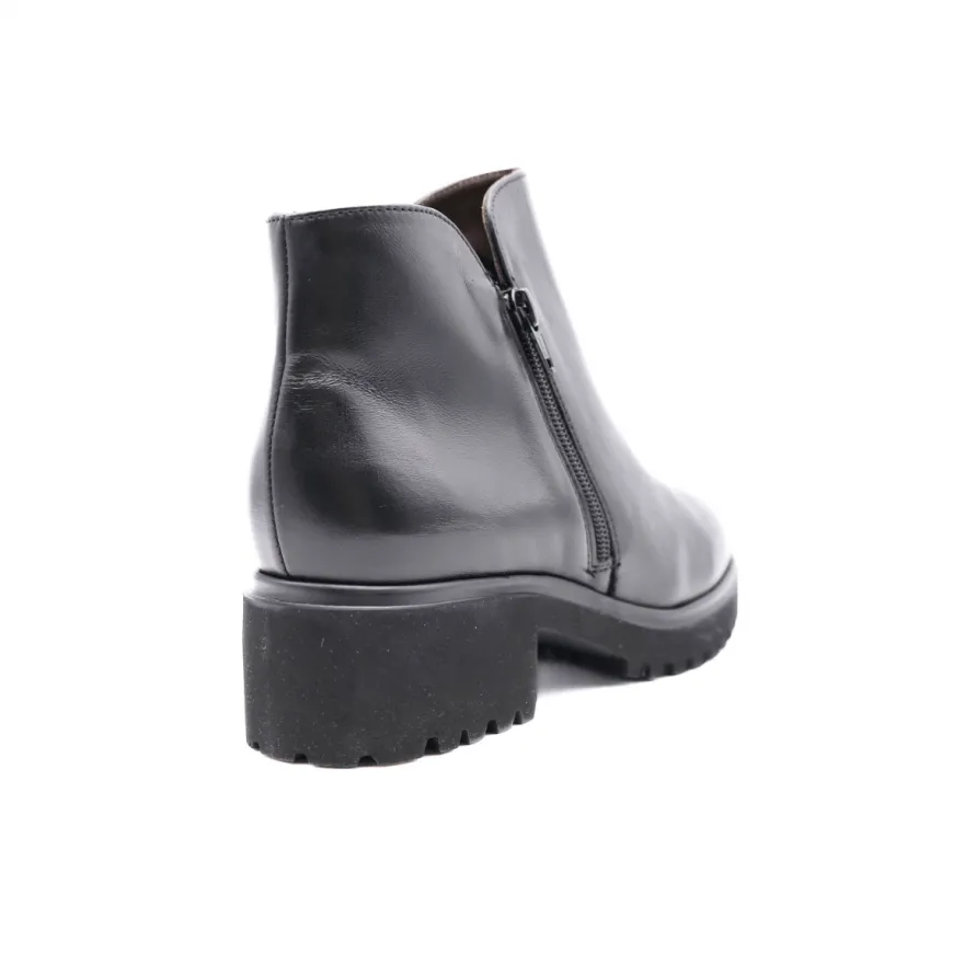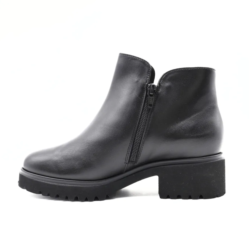 Stivaletto da donna di FRATELLI TOMASI in pelle nera con doppia zip bilaterale. Interno realizzato in pelle con morbido sottopiede estraibile. Suola in gomma (altezza tacco: 4cm)