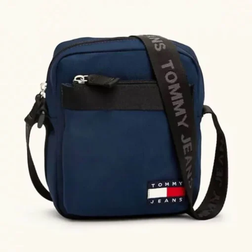 Borsello da uomo di TOMMY HILFIGER, realizzato in tessuto blu con logo ricamato. Doppia tasca per organizzarti meglio. Tracolla in tessuto regolabile.