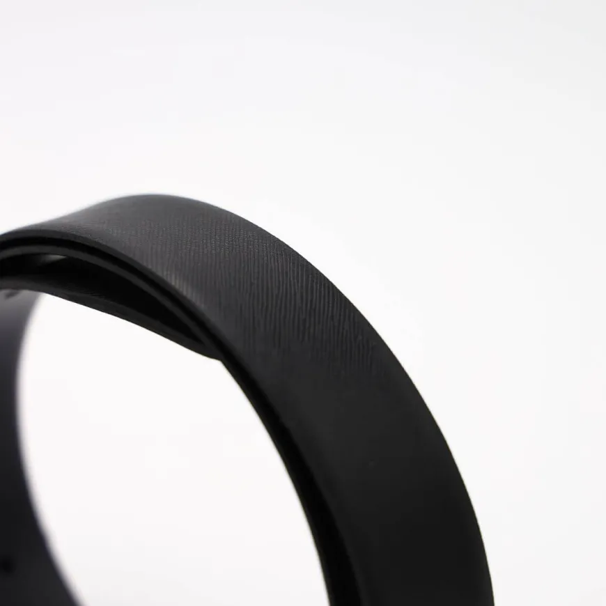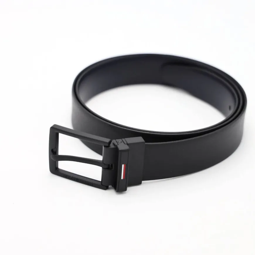 L’elegante cintura in pura pelle double, liscia da una parte ed effetto saffiano dall’altra, è completata dalla fibbia quadrata con finitura opaca tono su tono, per un look d’ispirazione contemporanea.