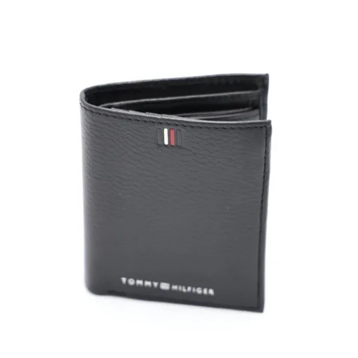 Tieni tutto in ordine e a portata di mano, grazie al portafogli trifold ripiegabile di TOMMY HILFIGER, in pelle nera con fessure e scomparti dedicati a carte di credito, monete e banconote, con scomparto dotato di retina. Decorato con logo di Tommy Hilfiger frontale.