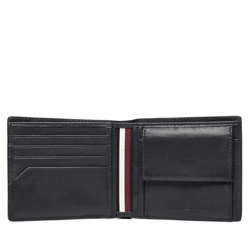 Il portafoglio bifold di TOMMY HILFIGER realizzato in pelle con mix di finiture, ti consente di organizzare banconote, carte e monete senza rinunciare allo stile.