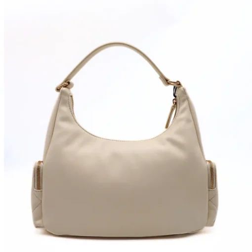 Borsa a spalla da donna di TWINSET, realizzata in similpelle crema con tasche effetto trapuntato chiuse con zip. Interno unico comparto con tasche accessorie. Manico in tono. Chiusura con zip.