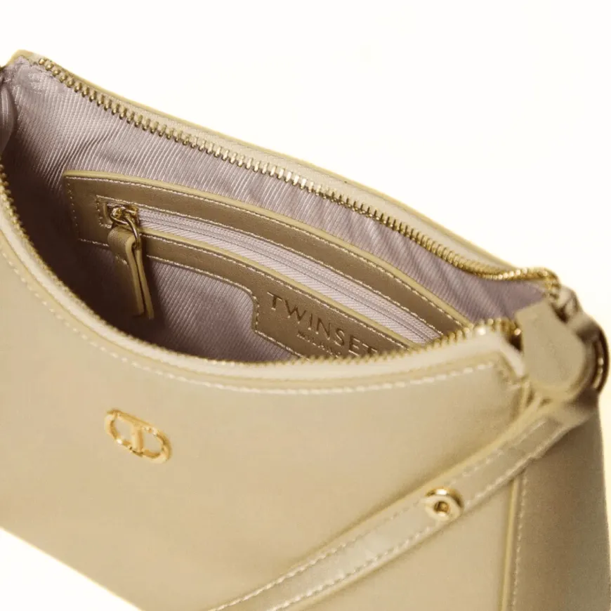 Mini hobo di TWINSET in effetto pelle liscia di vitello con chiusura con zip, Oval T davanti e tracolla regolabile da indossare a spalla o cross body. Interno unico comparto con tasche accessorie.