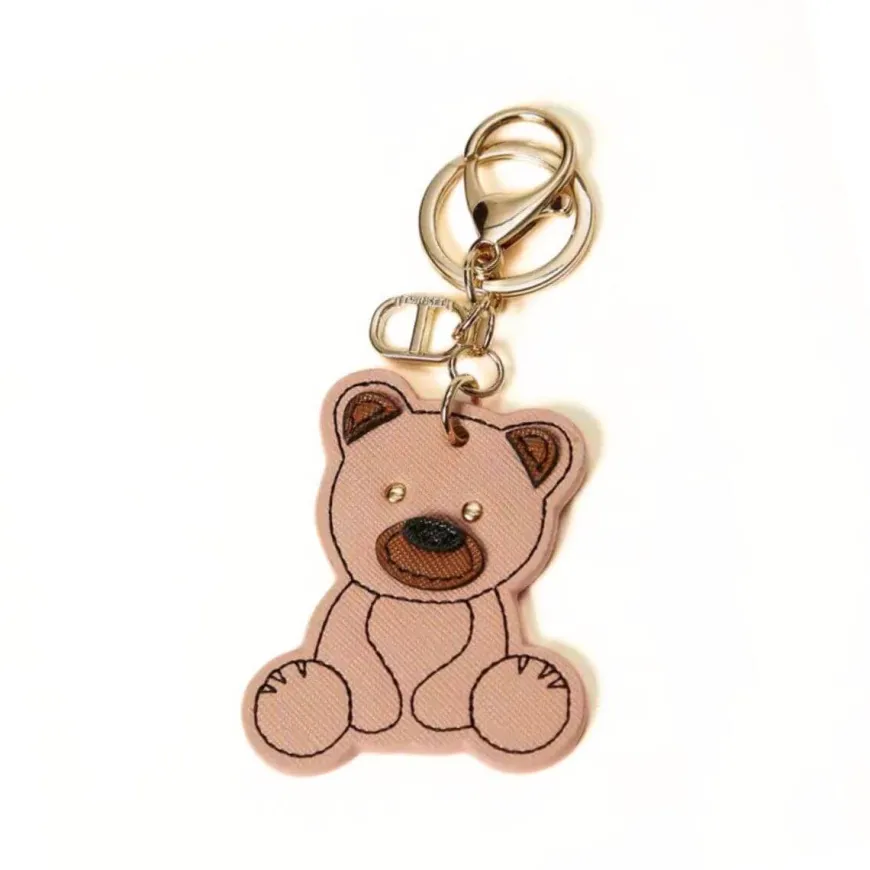 Portachiavi di TWINSET in simil pelle con grana saffiano e trattamento antigraffio a forma di orsetto, pendente con Oval T, anello con spirale, catena e moschettone.
