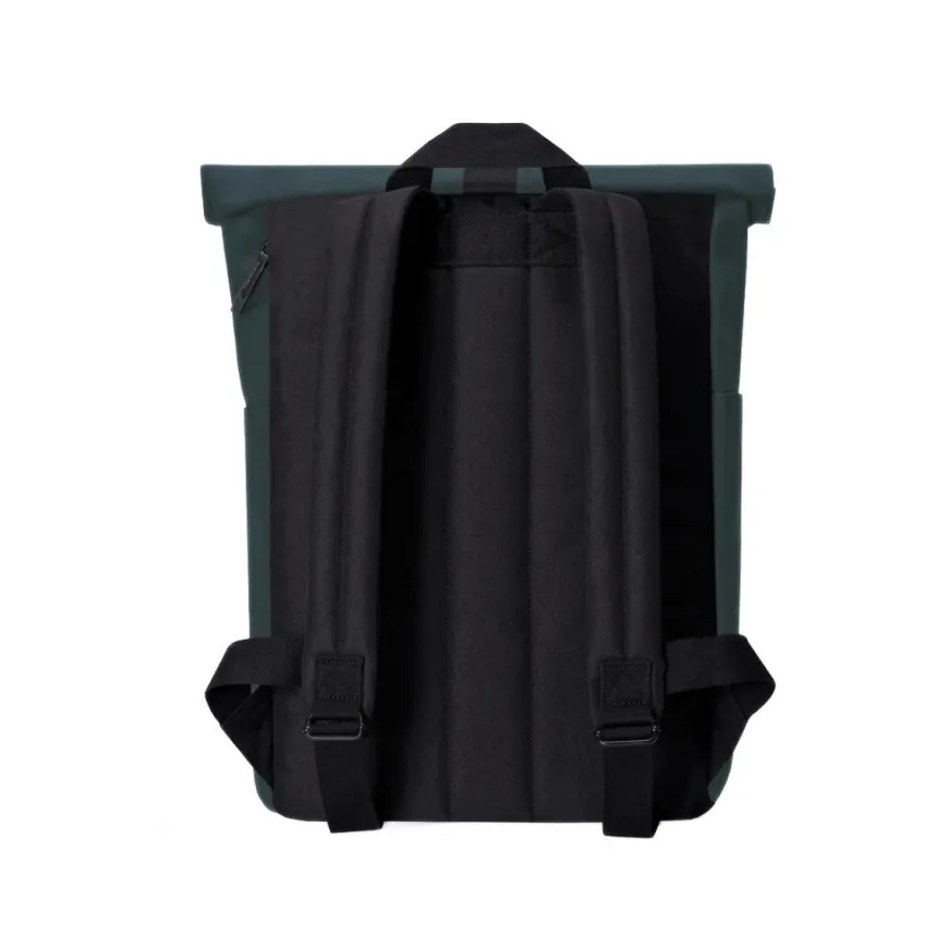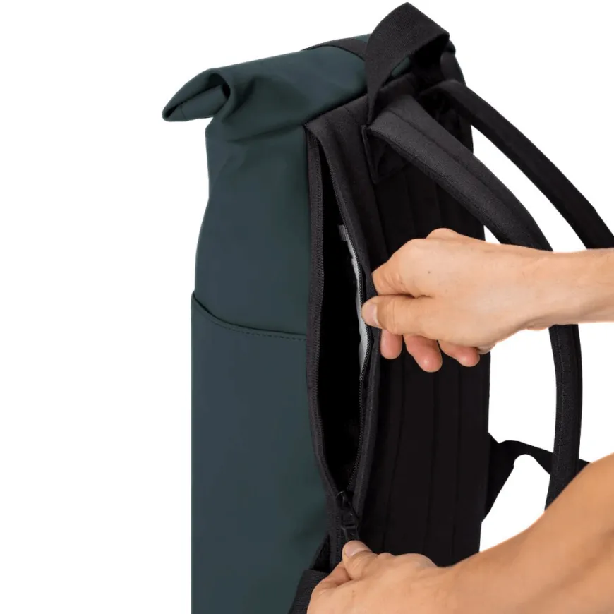 Questo zaino minimalista si adatterà a tutte le occasioni. La chiusura roll-top con velcro ti permette di riempire il tuo zaino Hajo Mini e chiuderlo in modo molto pratico grazie alla patta scorrevole. L’apertura principale si chiude con due bottoni a pressione e presenta un accesso rapido allo scomparto principale grazie alla cerniera verticale. Due tasche esterne sui lati e una tasca esterna sul davanti che si chiude con cerniera idrorepellente. Lo scomparto interno di alta qualità è realizzato in neoprene riciclato con ammortizzatore integrato, può ospitare un laptop o tablet da 16,4 pollici. Lo schienale rinforzato con imbottitura e gli spallacci regolabili e imbottiti garantiscono una comoda vestibilità dello zaino.